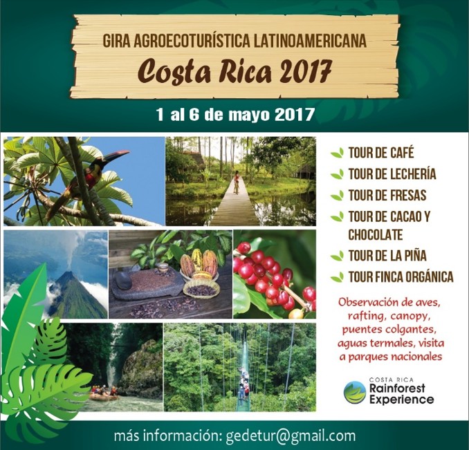 La gira de fortalecimiento de capacidades para los actores de la Ruta del Café de Honduras tuvo como objetivo conocer experiencias exitosas de agroecoturismo en Costa Rica, con el fin de fortalecer las competencias técnicas y empresariales necesarias para diseñar y operar productos turísticos vinculados a la producción cafetalera. La actividad se realizó del 01 al 06 de mayo de 2017, recorriendo el circuito Poás–Sarapíquí–La Fortuna, y contó con la participación de representantes de cooperativas, instituciones y operadores turísticos hondureños. La gira fue coordinada por Marvin Blanco (IICA), con apoyo logístico de Rainforest Experience.